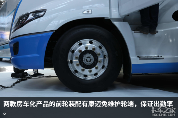 两款房车化产品的前轮装配有康迈免维护轮端,车辆的发动机与后桥均支持10万公里长换油,ZF AMT变速箱与ZF液力缓速器支持25万公里长换油,这一整套动力配置保证了车辆的高出勤率。