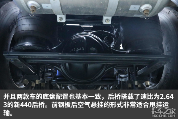 并且两款车的底盘配置也基本一致,后桥搭载了速比为2.643的新440后桥。值得一提的是,东风柳汽乘龙T7L和T7C都采用的是前钢板后空气悬挂的形式,非常适合甩挂运输。