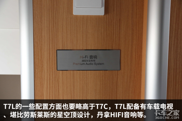 同时,T7L的一些配置方面也要略高于T7C,T7L配备有车载电视、堪比劳斯莱斯的星空顶设计,丹拿HIFI音响等,由此可以猜测未来T7L的售价应该会略高于T7C,同时T7L也会比T7C多出了一项“玩乐”的属性,能够匹配喜欢卡车文化的卡友和爱好者和对于舒适性要求极为看重的卡友的需求。