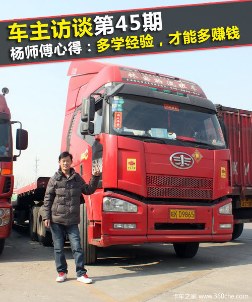 车主访谈 解放J6admin2012-02-28注:本文为卡车之家原创,版权归卡车之家所有,任何媒体、网站或个人如转载、引用时,请须注明“来源:卡车之家,并标明作者”,对于侵权行为,卡车之家保留起诉权利。改装