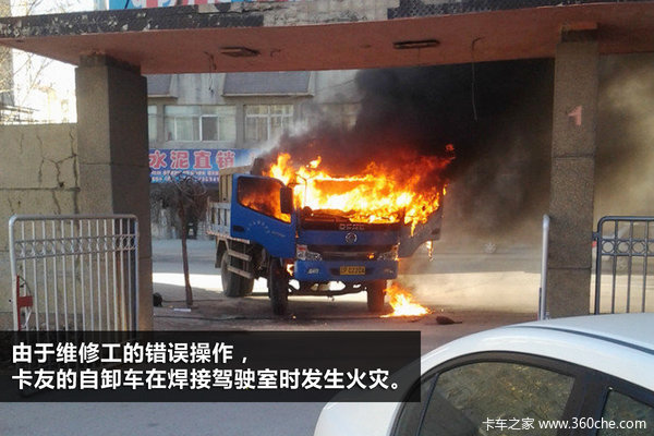 例如卡友“岛市小伙,”3月22日在其帖子中称,自己的东风金刚自卸车由于驾驶室底座开焊,在焊接过程中由于维修工错误操作导致整个驾驶室起火,全部维修下来花费22000元,尽管由维修工赔偿,但车辆起火的教训也是非常深刻的。详细内容可以阅读下面帖子。