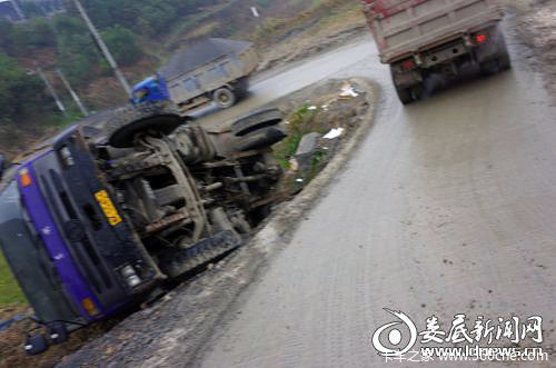 3月22日侧翻在马路旁的大货车