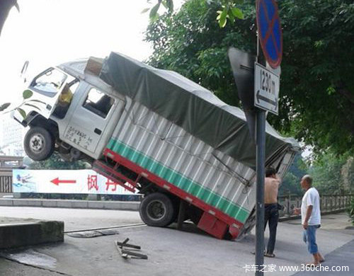 6月27日16时50分许,一辆货车从白马南路准备拐到白马河桥时,车头突然“站立”起来。