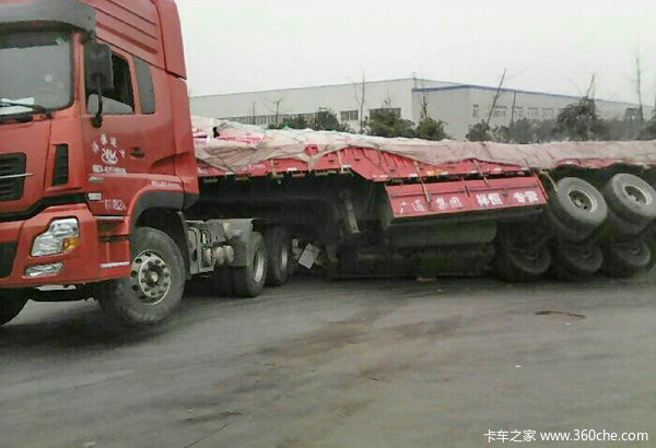 广西桂林卡友“超载号”的朋友就遇到了这么个糟心事儿,眼看货物运到了目的地门口,倒车的功夫挂车就倒了,这只天龙就这样卧了下来。货物是一车的旺仔牛奶,如果货物有破损,人家拒收货,要按1.5倍价格赔偿,这下车主真的慌了神,小心脏跳的砰砰快。