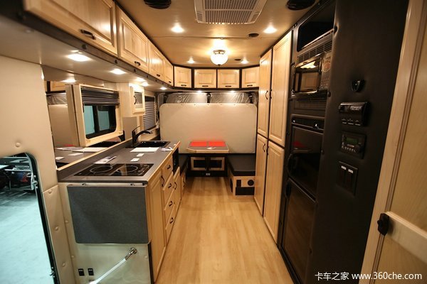 这是加长型驾驶室的的内部空间,配备有沙发、卧铺、厨具、冰箱、烤箱、电视、空调甚至还有卫生间。驾驶这样的卡车,生活档次立马上了一个大的台阶。