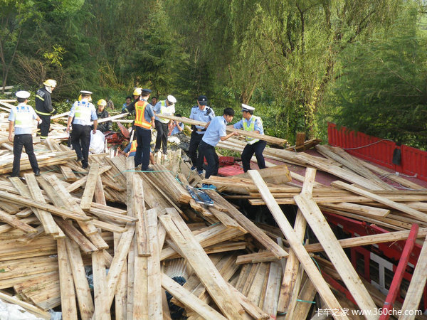 9月22日凌晨,沪蓉高速公路镇江丹阳境内,发生一起惨烈车祸,一辆南京牌照满载木材扣件的重型半挂牵引车,撞上护栏后侧翻冲出高速。车上木材全部倾覆。令人惊心的是,车头扭成了“麻花”,车内司机及躺在后卧上的两名男子全部不幸身亡。
