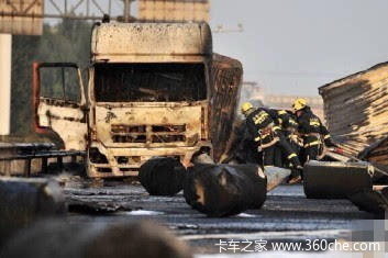 13日下午3点,济青高速北线唐王立交桥东临,自东向西车道发生爆炸。事故现场占据了近200米的高速路,爆炸的是1米多高的储油罐,20多个储油罐被炸得变了形。