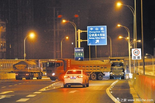 连日来,不少热心市民举报午夜货车横行鹦鹉洲长江大桥,对交通安全带来了不小隐患。本周开始,武昌交警联合区治超城管组成联合执法组,每天凌晨对超载货车、渣土车夜闯鹦鹉洲长江大桥的违法行为进行专项整治,共查处违法上桥行驶货车30余起,查扣超载货车7辆。