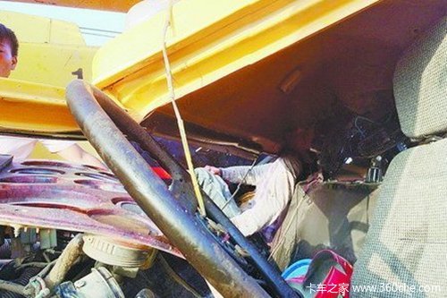 男子身子拗成“V”字形,臀部被卡在驾驶座上,怎么都挪不了位,只好等着消防官兵来救援,而男子所乘的大吊车被另一辆大吊车和大货车前后夹击。这是10月26日清晨6时55分,在海翔大道东孚立交桥上发生三车追尾事故。