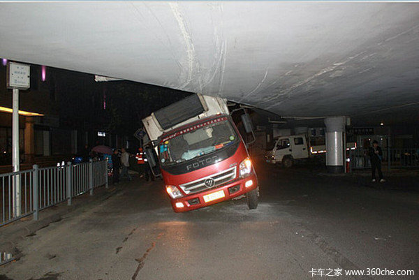 10月28日凌晨5时许,在绵阳科委立交桥下发生一起突发事故:一辆中型厢式货车因为不熟悉道路,误冲入立交桥下行驶,结果被牢牢卡住。最终经过交警部门两个多小时的紧张救援,终于在早高峰来临之前将该车拖离现场。