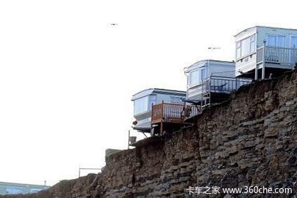海岸边欣赏美丽海景既是赏心乐事,也可能伤及性命,英国的波斯凯里(Porthkerry)休闲公园的假日房车就因为海岸侵蚀而垂于200英尺(约61米)的悬崖边,形成了一个独特的“悬崖上的房车公园”,当然这并非是什么好事,因为目前的房车公园状况已经到了岌岌可危的情况。