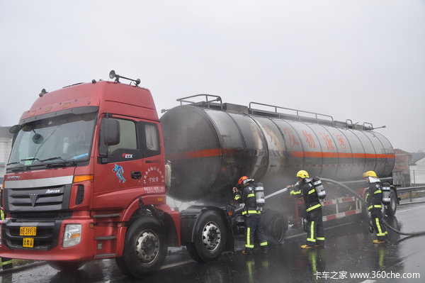 经了解,晋JL2***危化品运输车是由于轮胎爆胎的冲击力将柴油罐体阀门崩开,致使运输柴油迅速喷洒、泄漏,并蔓延至高速公路路面。虽然驾驶员、押运员已对泄漏口进行处置。但情况不容乐观,路面泄漏的柴油严重影响高速公路路面行车安全。