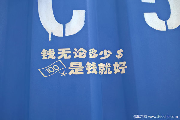 这是一辆14年的豪沃轻卡,跟其他车不同的是,前任车主在车的四周都粘贴了趣味贴纸。