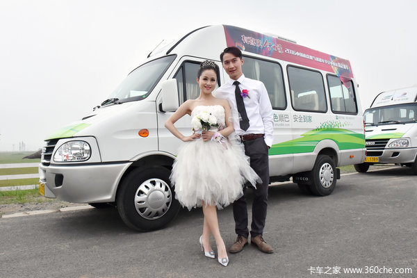 新郎王先生表说,他第一次遇见未婚妻,就是在前往云南旅游的依维柯客车上:“可以说,依维柯见证了我们的第一次相遇,也见证我们的爱情果实。”2016年6月10日,在南京巴布洛生态谷举行的2016年中国南京热气球嘉年华活动暨南京电视台月月相亲会十周年庆典盛宴上,南京依维柯10辆Power Daily尊享版组成幸福车队,满载50对新人迈向婚姻殿堂,见证爱的幸福起航!