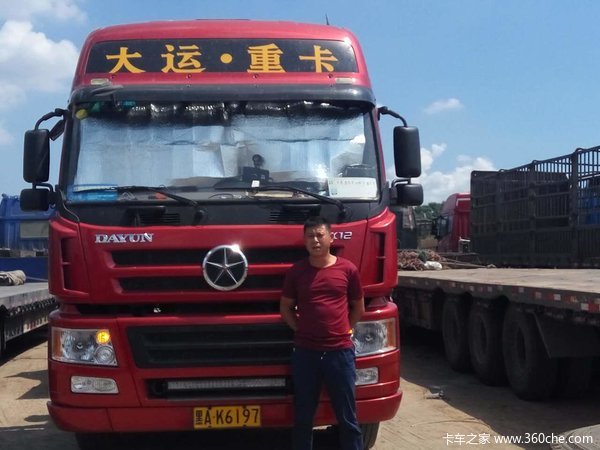 王坤的这台大运重卡是2014年8月购买,至今还不到两年,375马力,潍柴12L发动机,时尚霸气的外表让王坤第一眼便相中了。他特别喜欢大运时尚的前脸造型:“很时尚,很霸气,就像咱们东北女人的脸,棱角分明而不失妩媚。”而真正让他下决心买大运车的还是大运重卡的黄金动力总成配置,“潍柴12升发动机+法士特变速箱+汉德车桥,这种动力总成的配置跑运输绝对错不了。”