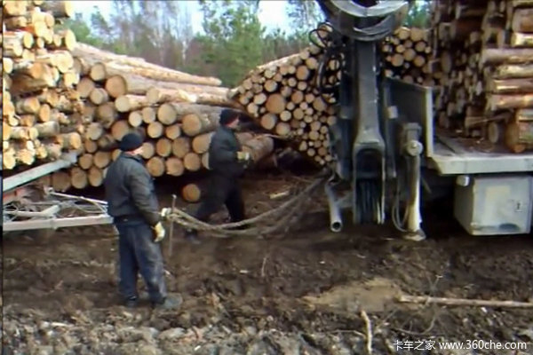 视频是一辆6x4的MAN木材运输车,6x4驱动,510马力,带一辆全挂车。结果由于地面比较湿滑,拖不动挂车,只能自己走。