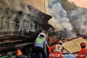 很快,句容和南京十辆消防车先后到达现场,不过,由于车上装满一层层架空的木材,消防员水枪只能扑灭外表的火焰,内部的火焰依然无法扑灭。而如果着火点扑灭不彻底,一旦复燃,就会殃及路边的树林和高压电线,那样后果不堪设想。