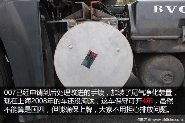 不过按照上海的地方法规,这台车已经申请到后处理改进的手续,加装了尾气净化装置,虽然不能算是国四,但能确保上牌,保守估计仍可开4年。