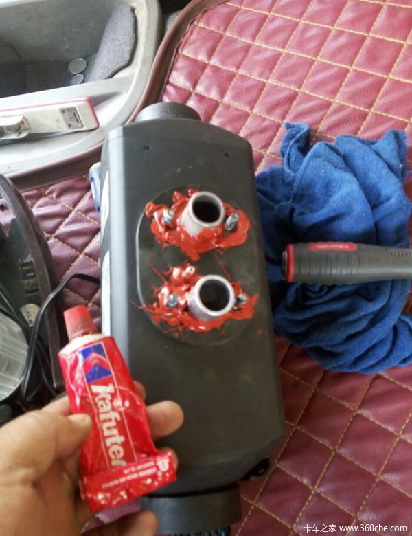 在保养完燃烧室点火极之后,卡友“老情人”在密封胶垫处打了一层密封胶加强密封,这胶打得像屎一样应该给个差评。
