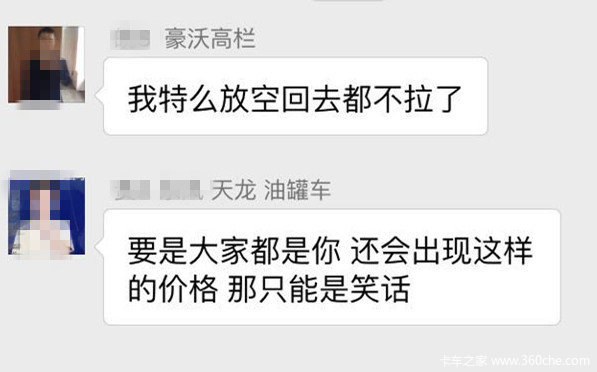 也有卡友表示低价格货源大家就该团结抵制,货运部总以回程车来压低价格,换个角度每辆车都可以成为回程车,如果都拉低价格的回程货,那么运价还有上涨的可能么?恶性循环最后吃亏的还不是咱司机,货运部现在的价格就是让那些活雷锋给惯坏了,回程车遇到低价货跑了,但不是回程车的车主看到低价格可就哭了。
