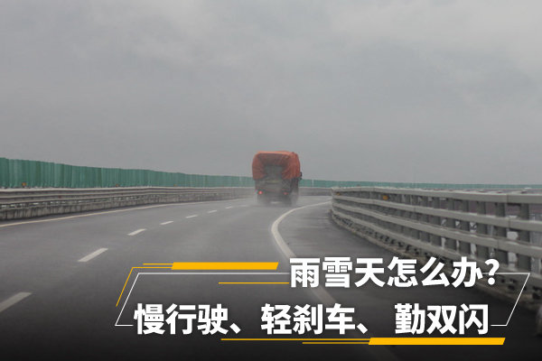 轻踩刹车是雨雪天气行车时正确的制动使用方式,如果猛踩刹车很有可能出现挂车推头的情况,所以在安全距离足够的状况下,司机们可以重复轻踩刹车的动作,让车辆的车速降缓,也不会出现挂车推头的情况。