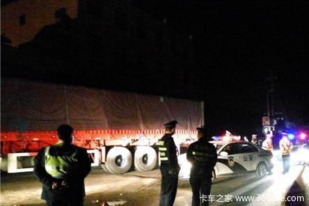 不大会儿功夫,道路疏通后,车队继续向东而去。为了弄清“百吨王”到底是怎样过境我市的,23时许,记者一行尾随其中的一个车队向东而去。到达位于焦黄公路上的商水县白寺镇街道上后,车队向南上了省道S206后向东行驶,到达商水县姚集乡街道后顺着S206向北经过商水县城向北继续行驶。在周商大道铁路立交南侧,这儿有一交通部门设置的限高杆,可车队装载的货物都超过了限高杆,记者正得意车队无法通过时,却见前面的第一辆车方向向右一打,从限高杆前的一个路口进入东侧辅道,顺利通过“关口”。之后,“百吨王”经由开元大道向东一直行驶进入周项路,在周项路与武盛大道交汇路口向北行驶到达周淮路向淮阳方向行驶,在周淮路与淮阳县城西三环路口处拐向西三环,之后在西三环与五彩路交汇路口处朝着太康、商丘方向而去,此时已是凌晨1时40分许,由于记者车辆油已耗尽,只有就此罢休。