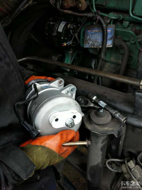 前段时间,我的老公小志经营的这台解放J6,锡柴420马力的车由成都装货去杭州方向,行驶到湖北境内,司机听到发动机异响,便开到就近服务区进行检查,各种排查发现空调压缩机“爆死 ”了,皮带轮不转了。