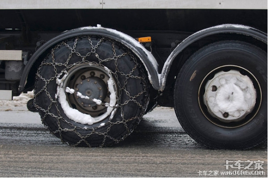 山区、高原的冰雪路,前四后八的驱动轮装上四条防滑链,能够通过陡坡急弯处。四驱牵引车也装四条,通过能力比前四后八差,货物前沉会好一点。多数人只带两条防滑链,起步时一空转就坏,必须用四条防滑链。