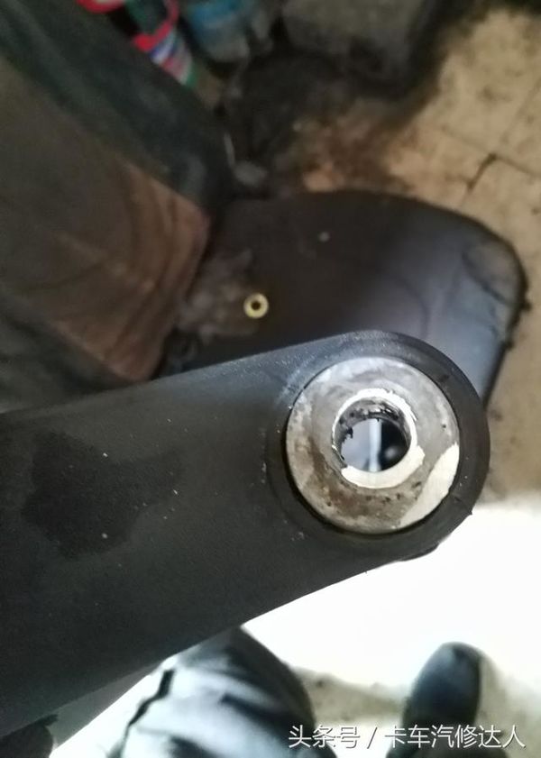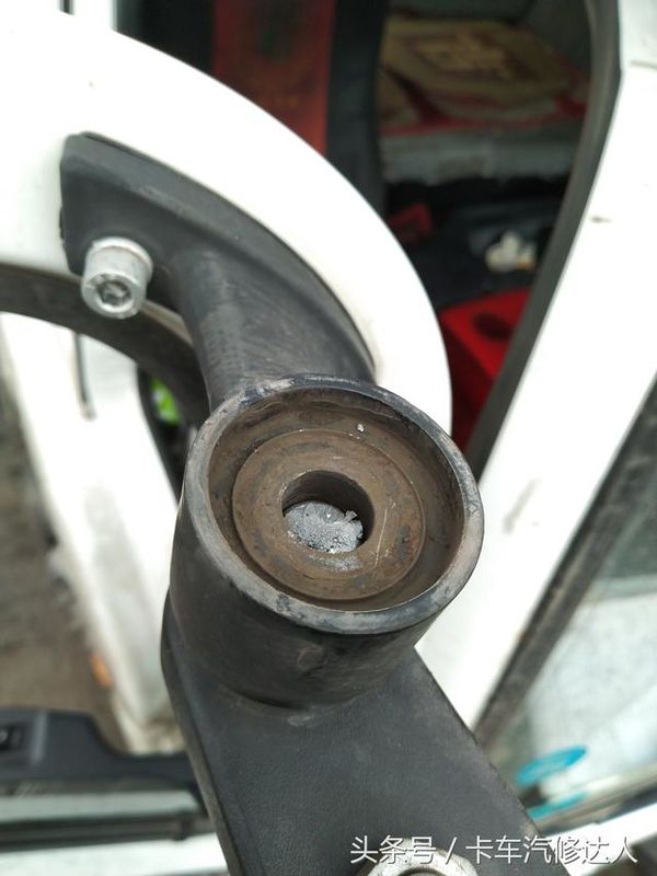 在反光镜与上端支架分离后,可以明显看到螺栓是镶嵌到里面的。所以想简单的更换一根螺栓解决问题是不可能的事情了。
