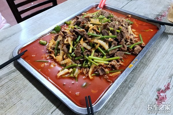 国道周边相对亲民可口的饭菜,或是他如今唯一感到舒适的了。在河南西陕,这一碟中份牛肉只要70元,我们三人同食还有富余。不仅如此,门前还有洗车工具免费使用。