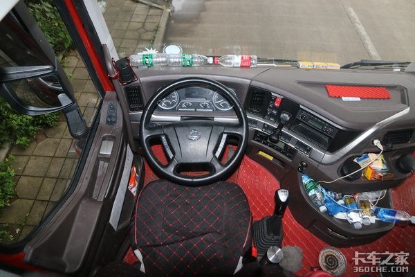 由于之前一直在跑这条路,所以买新车时他并没有纠结配置。潍柴550马力发动机;法士特12档变速箱,最高档为超速档;3.417方盛后桥。发动机最大扭矩转速1000-1400,1200转时车速能达到82km/h左右。动力输出充沛且经济,跑这条路完全是游刃有余了。