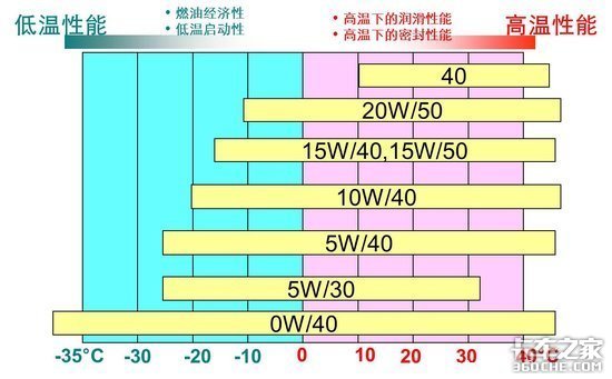 对于机油的粘稠度,我们使用的是SAE等级标识,例如:SAE15W-40“W”表示 Winter(冬季),其前面的数字越小说明机油的低温流动性越好,代表可供使用的环境温度越低,在冷启动时对发动机的保护能力越好;“W”后面(一横后面)的数字则是机油耐高温性的指标,数值越大说明机油在高温下的保护性能越好。