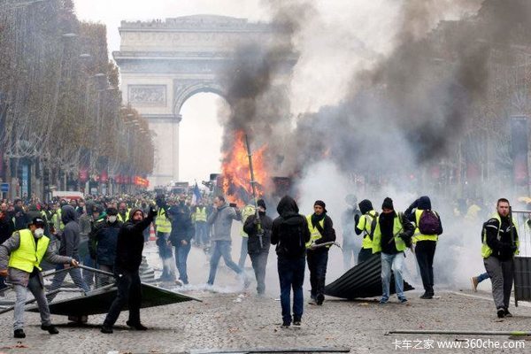 【卡车之家 原创】浪漫的法国人生气了,姿势一点也不优雅、行为也很粗暴,局面一度失控,后果相当严重。几百年的文物砸了、国家脸面凯旋门伤了、Dior奢侈品店铺抢了,警察汽车掀了,香榭丽大街成战壕了。
