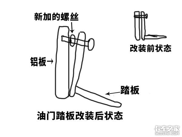 卡友改装油门的大致原理,其实就是加个螺丝改变一下踏板的倾斜角度