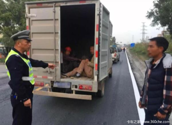 前几天,广东省佛山市高明区交警巡逻时发现一辆后门没有关好的轻型厢式货车,正当民警驾车加速上前打算提醒司机时却发现车厢内装的不是货物,居然是一车人。经查,该车辆核载5人,实际载人13人,人员超载160%。更让人揪心的是该货车司机居然只有摩托车驾驶证,司机及乘车人对交通法规和人身安全的淡薄意识真是让人可怕。