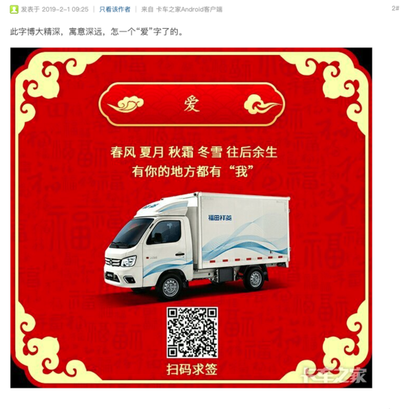年前,福田祥菱联合卡车之家举办“新年上上签,福田祥菱送“新”愿”活动,活动通过扫描二维码,玩摇签筒送祝福的方式抽出锦鲤签,随机选出28名锦鲤签用户奉上大奖,寓意:生活就像抽签,你永远不知道下一根签是好是坏,但是我们仍要不断前行!