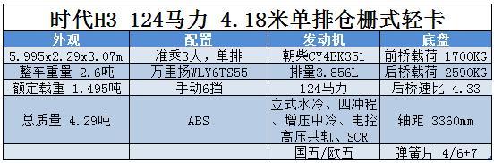 时代H3 124马力 4.18米单排仓栅式轻卡