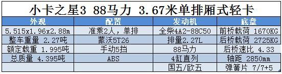 别看这辆小卡之星3是辆微卡,最大只有88马力,但它的承载能力和各项性能不输一些轻卡。车身虽窄一些,但比轻卡更加小巧,更适合在城市中来回穿梭。想要从事城市配送的卡友,不妨多了解一下这样的微卡。