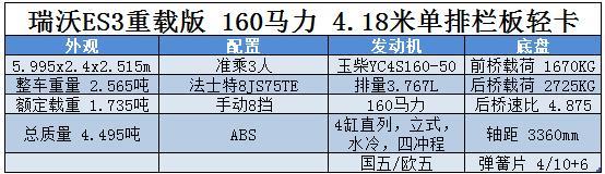 瑞沃ES3重载版 160马力 4.18米单排栏板轻卡