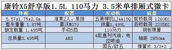 康铃X5 舒享版 1.5L 110马力 3.5米单排厢式微卡