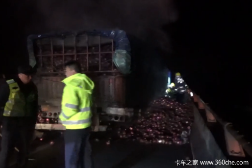 接警后消防中队立即出动1车8人赶赴现场,中途与报警人联系得知,是一辆拉有洋葱的半挂车起火,驾驶员已将车头与车身分离,高速消防已到达现场。