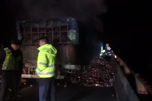 3月11日02时50分西汉高速(汉中至宁陕)距离宁陕服务区3公里地方一辆货车轮胎起火。