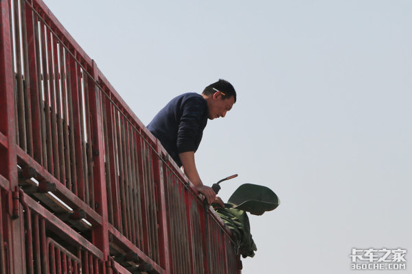 下午两点到达双平汽运的停车场,我习惯性地先到办公室寻找党总,但左找右找找不到人。经过询问才知道,场地里正在焊接货箱的那位就是今天采访的主角。手拿电焊,头上贴着一个创可贴,一点老板的架子也没有————看来八成也是卡友出身。