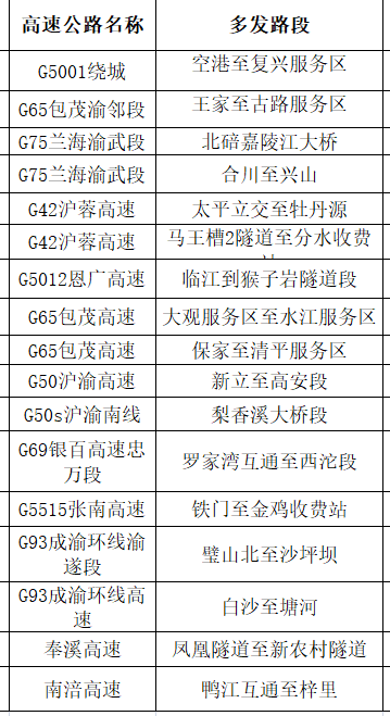 由于地势原因,重庆的雾一般为一段一段的团雾,点多面小。团雾的危险性想必大家都是知道的,所以在此为大家汇总一下重庆高速易起雾多发路段。