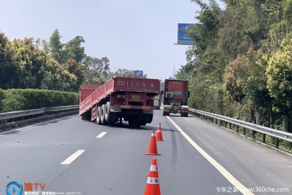 2019年3月25日下午1点左右,重庆交通行政执法总队高速公路第五支队五大队执法人员接报警称,G85渝昆高速公路出城方向106KM+60m路段(荣昌路段)有一半挂车的车厢与车头分离,掉落在行车道上,影响车辆正常通行,十分危险。