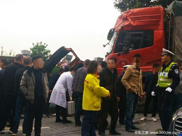 据了解:小车内有两人被困,驾驶员和小孩身体并无大碍,事故原因疑似大货车刹车气磅漏气,然后导致了滑行,便撞上了小车。