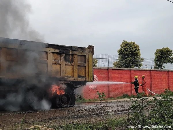 司机也没注意,将车开上水泥路的时候听见噼里啪啦的火花声,吓得他赶紧停下车下去查看,发现车已经将旁边的高压电线挂断了,货车轮胎被挂断的高压线引燃。