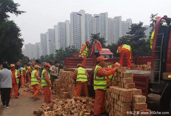 车上砖块洒落一地,占用两个车道影响通行,后方压车压到了咸宁路附近。侧翻车辆需要吊车和拖车进行拖移。市政正在现场清理砖块,目前砖块已经清理的差不多。