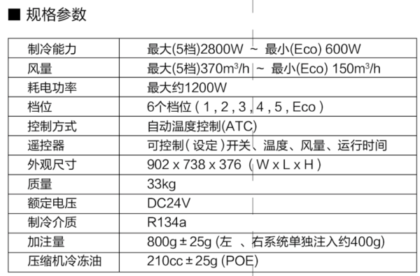 PC3000驻车空调规格参数