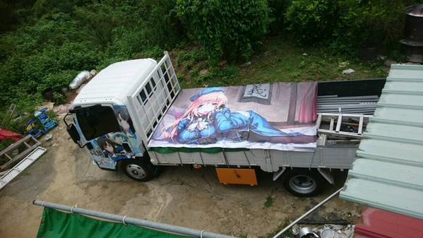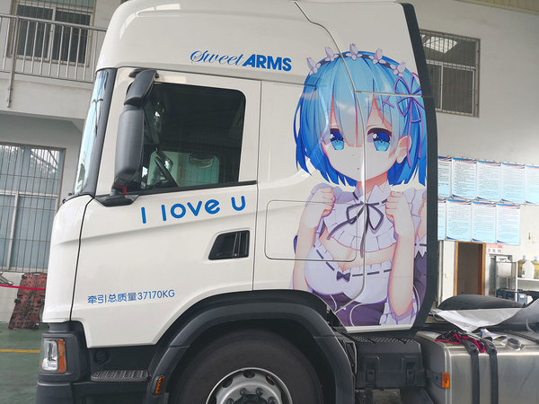 痛车文化起源于日本,一般是将动漫相关的人物或者内容贴或喷在车上,卡车上进行此类涂装的比较少,在国内就更加罕见了。
